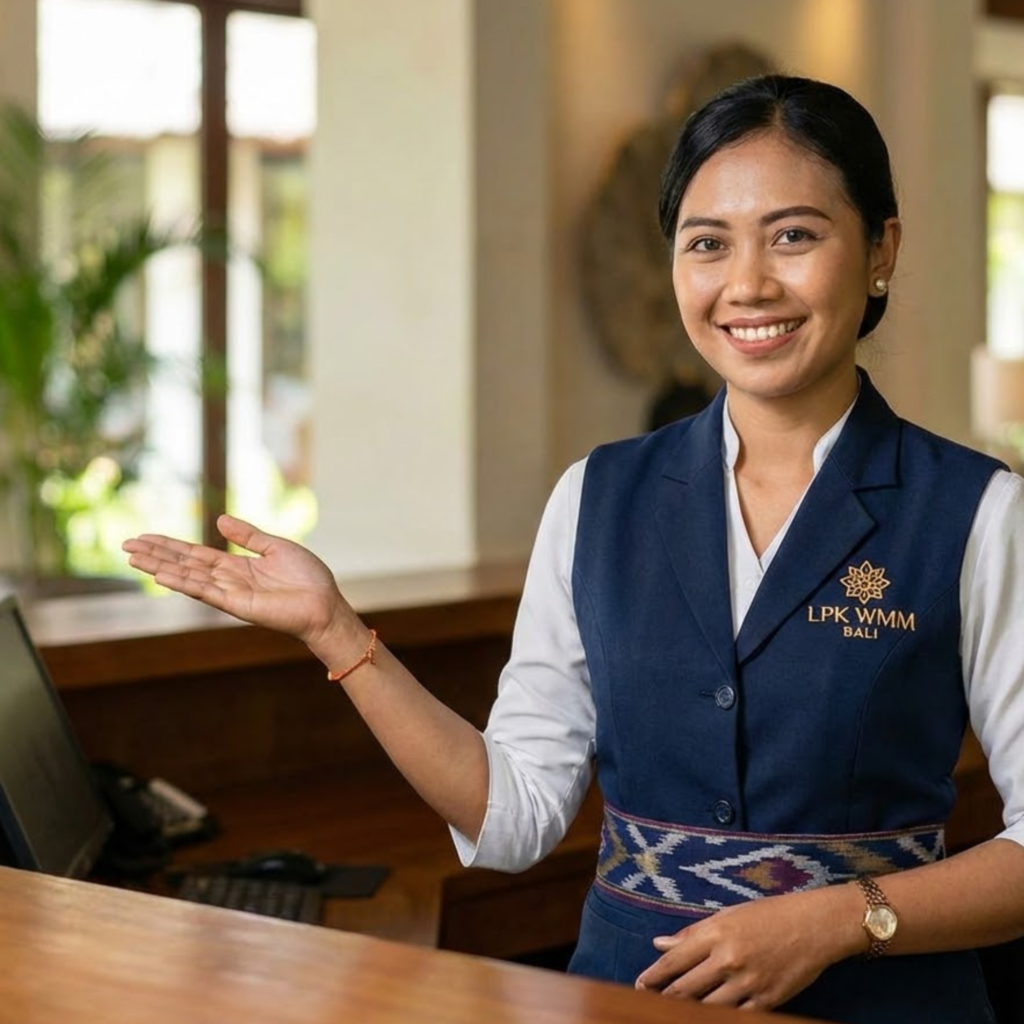 Industri perhotelan mewah menuntut apa yang kami sebut di LPK WMM Bali sebagai “English for Service”. Ini adalah level bahasa Inggris yang spesifik, sopan, efisien, dan dirancang untuk memberikan kenyamanan psikologis kepada tamu. Artikel ini akan membedah mengapa menguasai Handling Guest, Handling Complaint, dan Daily Operation dalam Bahasa Inggris adalah investasi terbaik untuk masa depan karir Anda.